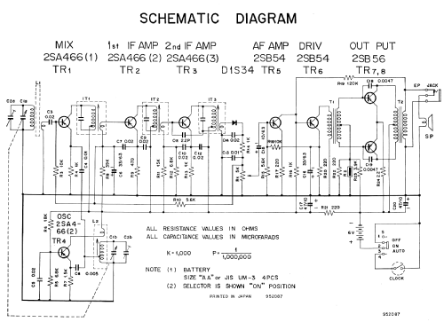 - Superheterodyne (common); ZF/IF 455 kHz; 3 AF stage(s)