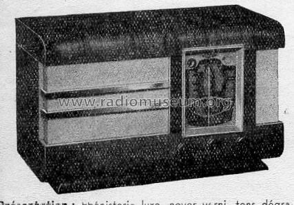 3 gammes d'ondes : OC de 19 à 52 m, PO de 200 à 550 m, GO de 1200 à 2000 m. Anti-fading agissant sur lampes EK2 en PO-GO et 6K7 sur les trois gammes. Réglage de tonalité. Lampes cadran : 2 x 6.3 V / 0.3 A.