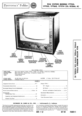 RCA Victor model 17T174 is a 17” b/w TV with US standard VHF tuner channels 2 thru 13.