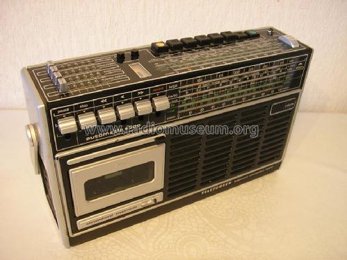 - Luxemburg-Taste, Eingang für Plattenspieler, Tonband oder ext. Mikrofon (eingebautes Electret Mikrofon), Pegelanzeige über Zeigerinstrument, getrennte Höhen/Tiefen- Regler, Ausgang für ext. Lautsprecher (= Kopfhöreranschluß), 8 tlg. Teleskopantenne (90 cm), 13 Dioden, E-Nr. 301 459 214, Made in Japan
