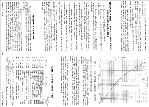 - The Westinghouse H-803-2 is an all channel UHF Television tuner with US standard channels 14 thru 83. Uses chassis V-11390-2 and obtains power from main TV chassis. This tuner is used in various Westinghouse 17" TV models (Except for plastic cabinets) whose chassis contains the provisions for its use.