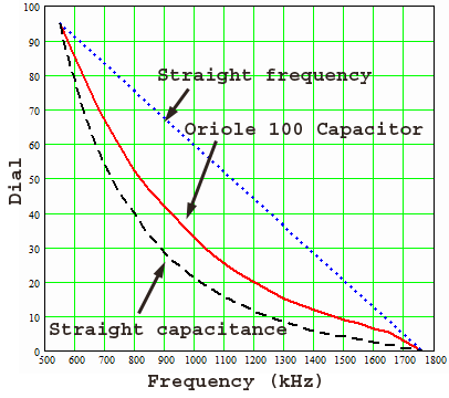A further characteristic of the "Vernier" control is that it works very similarly throughout the tuning band. This is in contrast with standard fine tuning bandspread capacitors that are very sensitive at the top of the band, but hardly do anything at the bottom of the band.