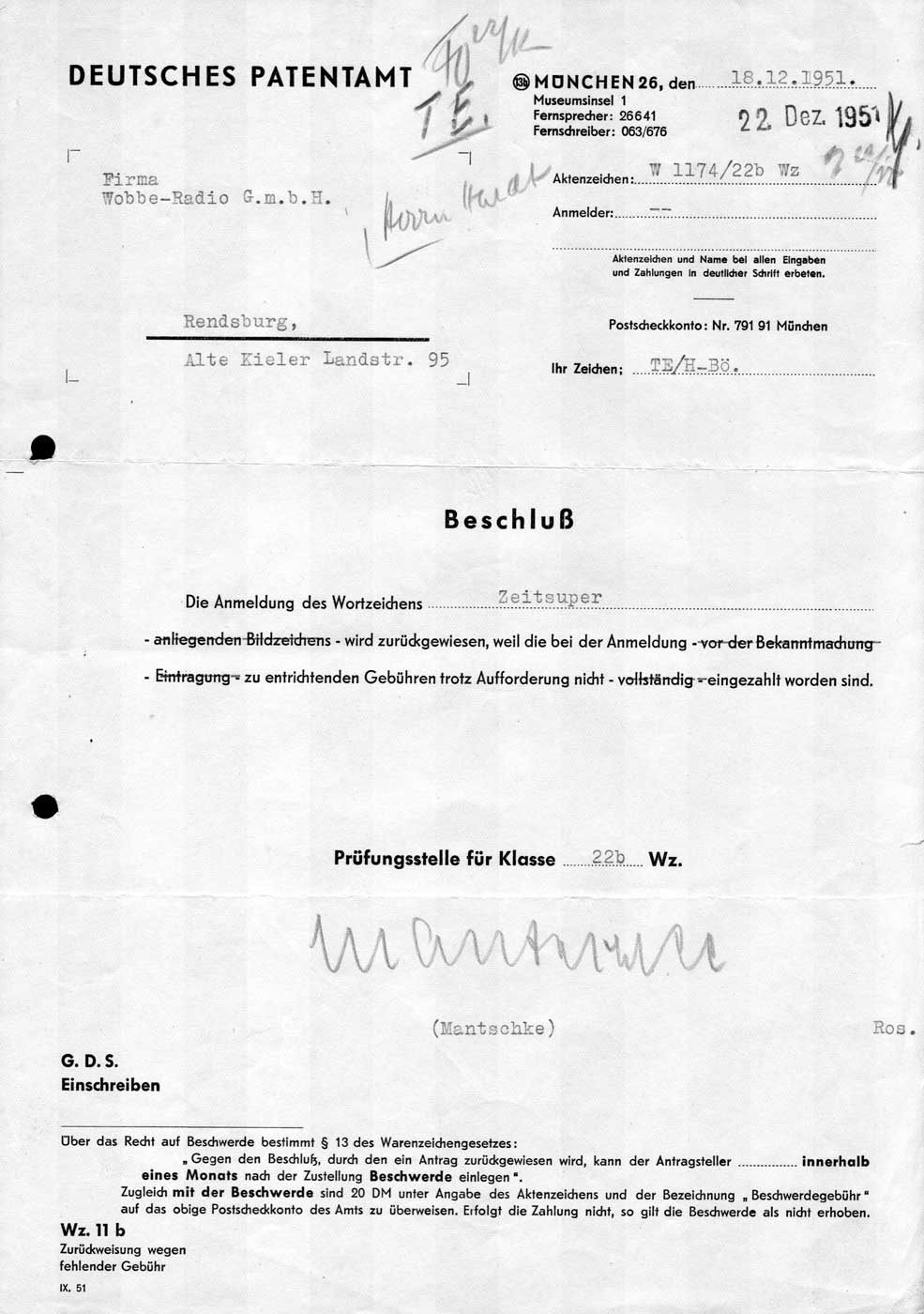 - Modèle: Zeitsuper - Wobbe-Radio; Winsen, später