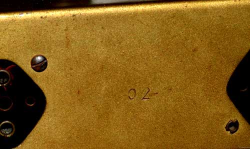 Die Abdeckplatte der Einstellräder besteht aus Messing und war stark angegriffen. Es war nicht klar, ob sie brüniert worden war und durch Alterung korrodiert war oder ob sie ursprünglich messingfarben war. Ich habe sie zuerst poliert und dann im Ofen bei 350 °C gealtert. Auf dem Foto der Funkausstellung erkennt man, dass die Platte hell war. Ich glaube so fügt sie sich gut in das Gesamtbild des Gerätes ein.